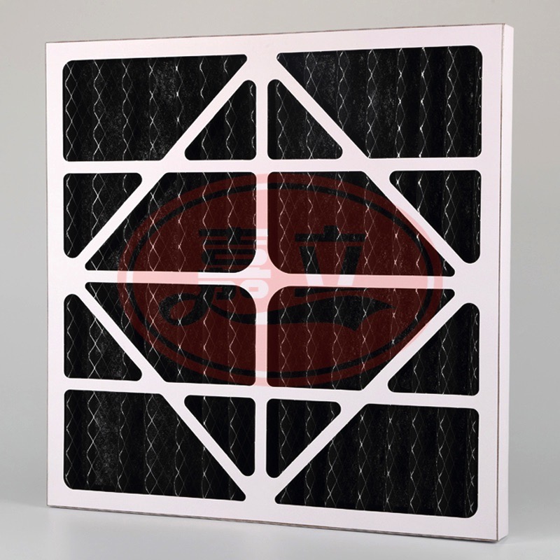 纸框初效过滤器滤料:是以折叠形式装入高强度摸且硬纸板内,迎风面积增大。流入的空气中的尘埃粒子被过滤材料有效阻挡褶与褶之间。洁净空气从另一面均匀流出,因此气流通过滤器是平缓和均匀的。视过滤材料不同,它所阻挡的粒径从0.5μm到5μm而不同,过滤效率也不同。